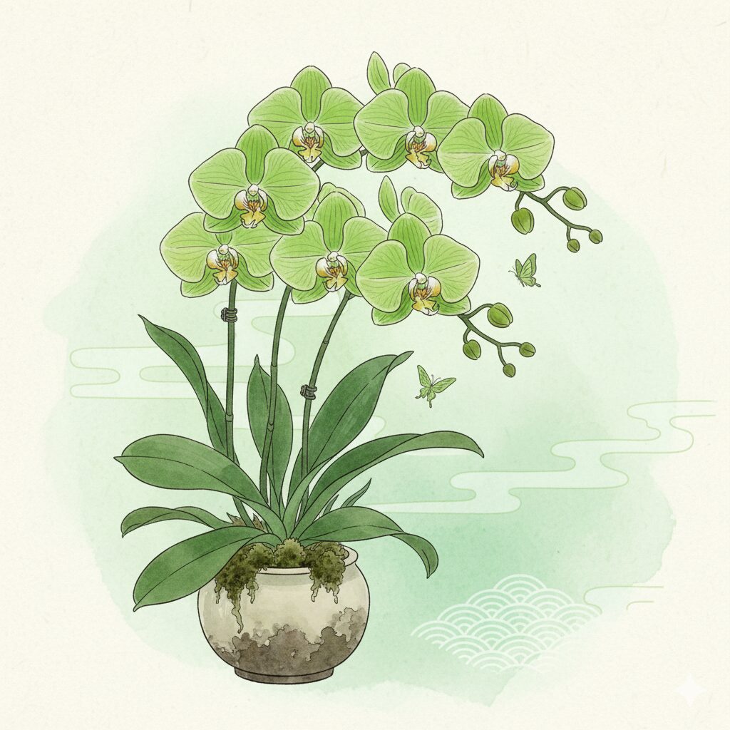 見た目の美しさだけでなく、空間のエネルギーをポジティブに変えてくれる緑色の胡蝶蘭を、ぜひ生活に取り入れてみてはいかがでしょうか。